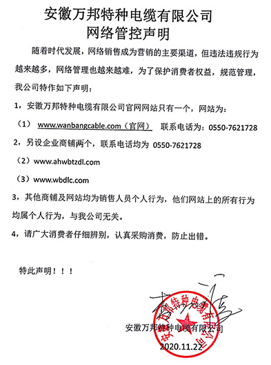 鄭重聲明:安徽萬邦特種電纜有限公司官方網站為:www_wanbangcable_com.jqpfl.com.cn,除此之外無任何子網站或合作網站,其余均為假冒偽劣。電話:0550-7621728 13485756353 地 址:安徽省天長市滁州高新技術產業開發區經四路29號